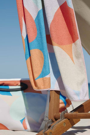 "With its beautiful vibrant pattern and deliciously soft plush, this sand-free towel will be my summer staple. I love how compact it folds down."